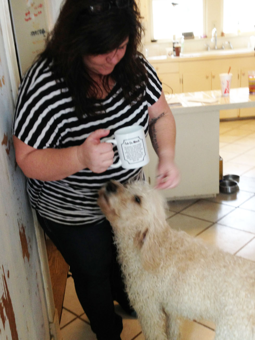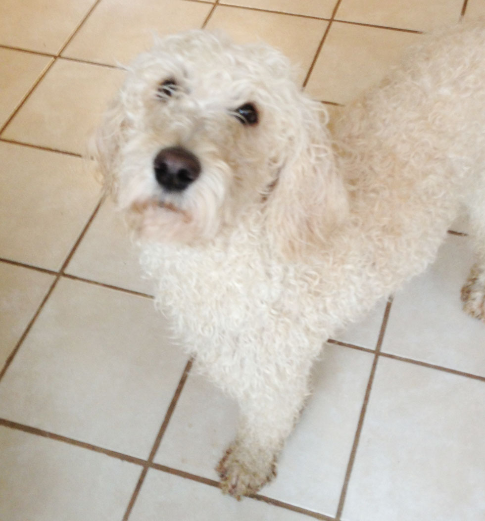 ADOPTED ON 05-22-15 – – Fran had a very rough start to life, but we have assured her that she will NEVER be mistreated again. Fran was previously tied outside to a tree and very mistreated. She used to be extremely nervous, but through her time in foster care, she has been learning that humans can be kind and loving, and that she can trust them again. Fran is so special, she even has her very own recliner in her foster home. Fran is a 3 year old female standard poodle. She is 44 pounds, spayed and up to date on all vaccinations.  Fran will be available to come north after June 1st.