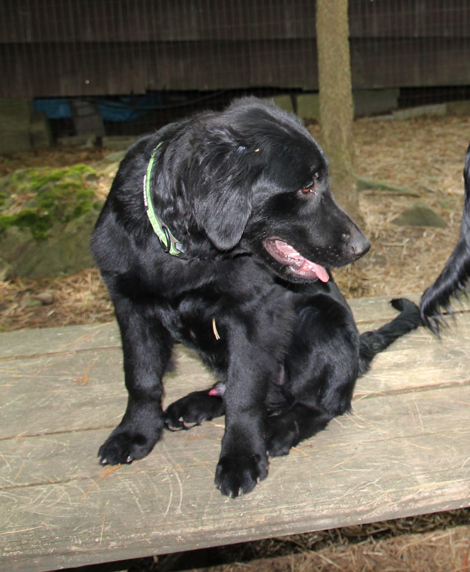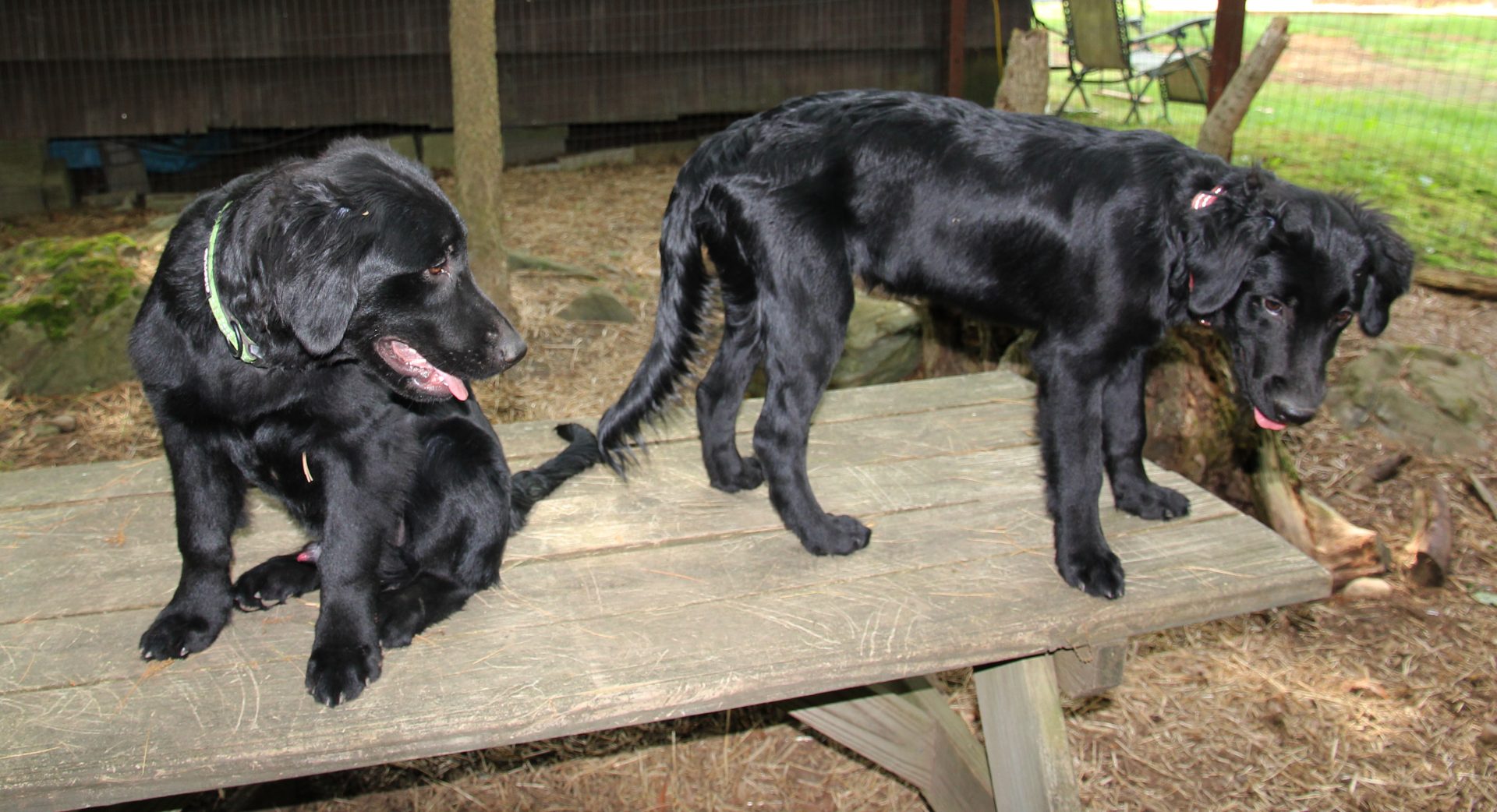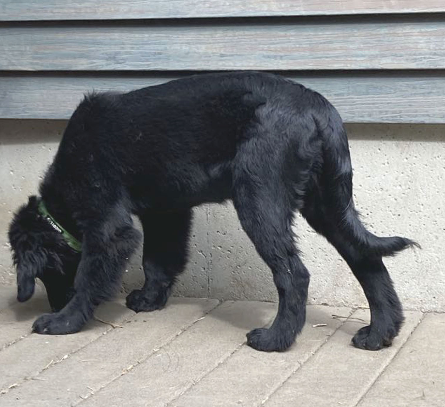 Green Jeans weighed 42.2 lbs. on June 13, 2024, he is a male flat coat retriever and was the first born. He is very loving and a laid-back big boy; each day before he is put down for a nap, he is the first to snuggle right up to his human and put his right paw on her leg. He is very smart, loving and social with people and dogs. He loves the pool but just but cautious about what exactly water is all about, personal attention and companionship from his littermates and humans.